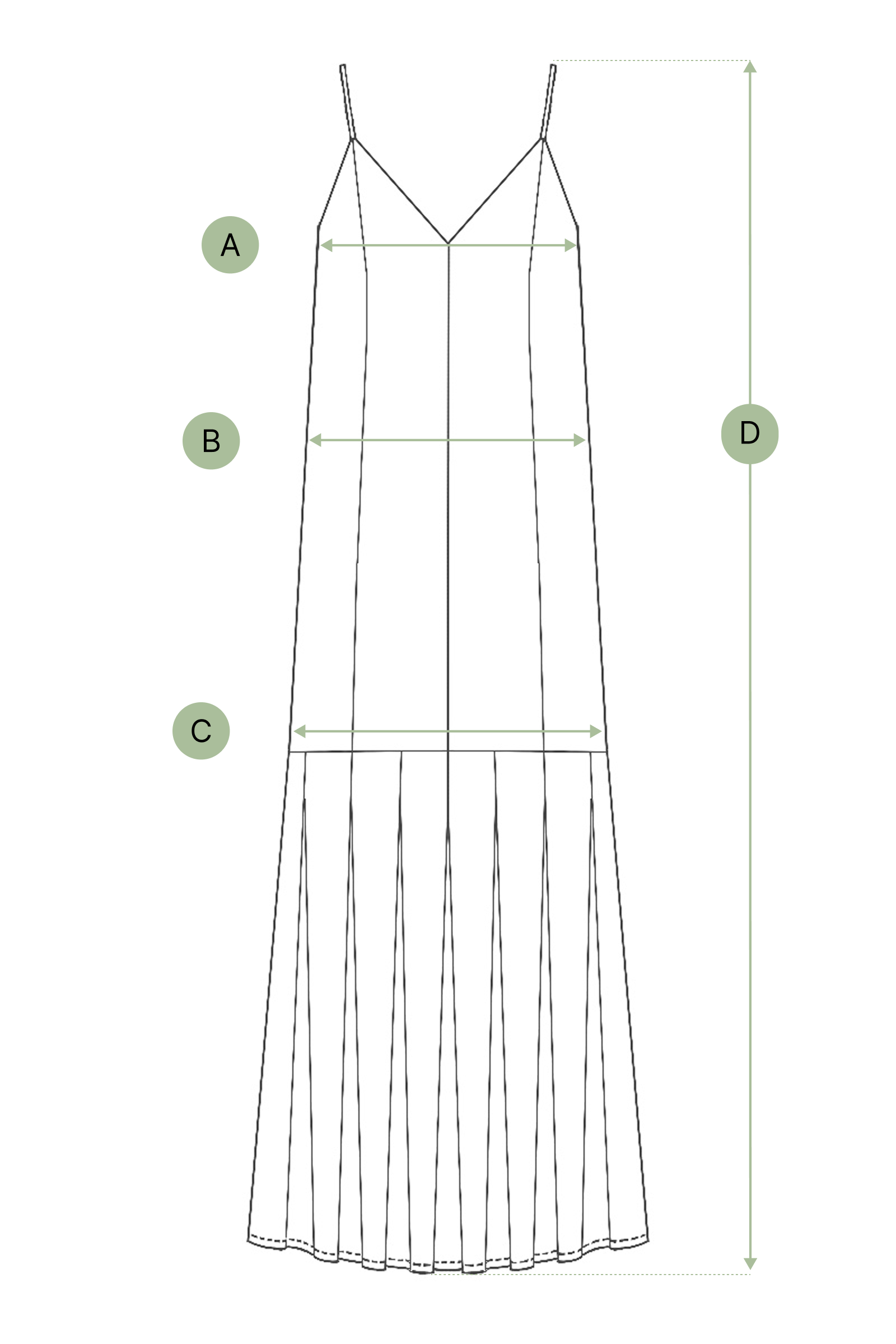 The Dessa Dress has a loose fit. If you are in between sizes we recommend sizing down. The model is 173 cm (5'8") tall and wears an S.