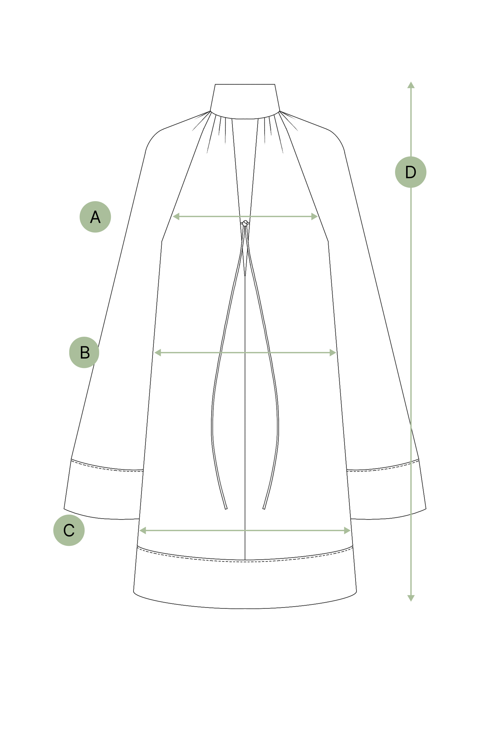 Mini wide/oversized dress featuring a softly gathered deep high neck, a V collar that can be closed with spaghetti straps, a deep V back that ties, sleeves with wide cuffs, and a long spaghetti belt to wrap around the waist.