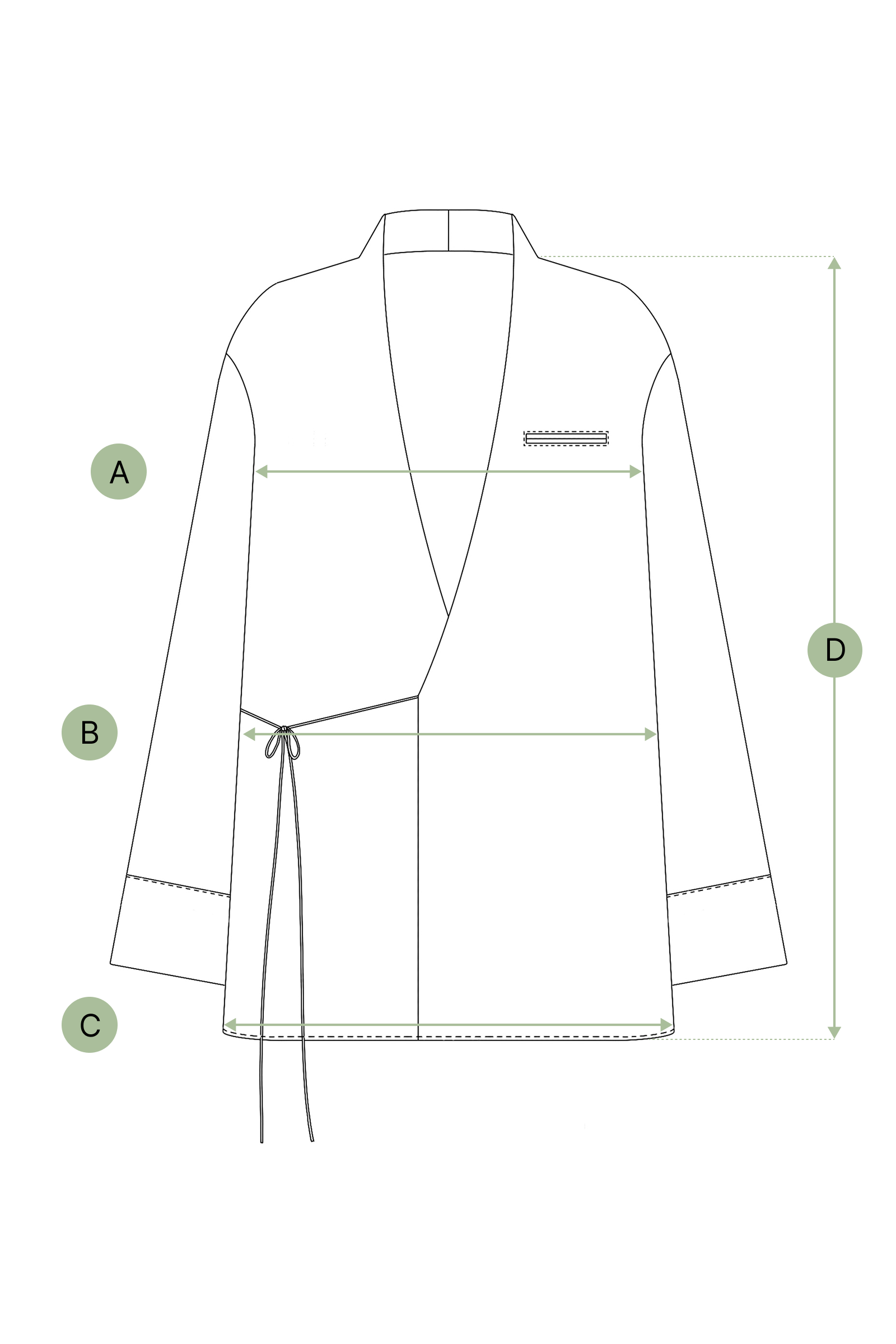 Chaqueta cruzada en sarga satinada de acabado sutil, con fondo azul marino intenso y pequeños motivos florales en color marfil. Diseñada con escote en V, mangas amplias de estilo kimono y cierre con lazada en la cintura. Corte recto para un ajuste relajado.