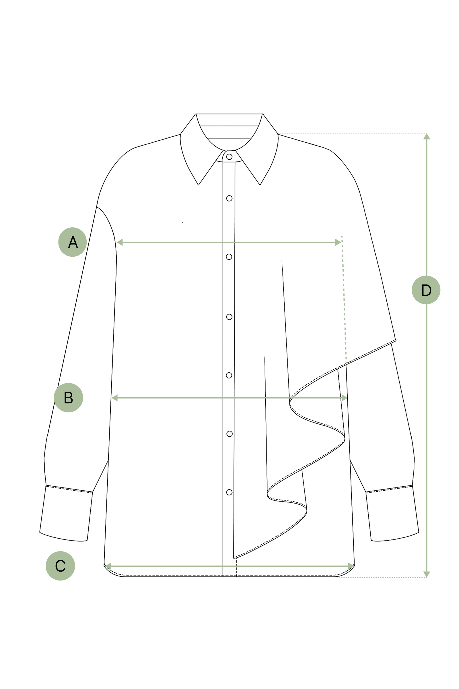 La Chemise Lunar taille grand. Si vous hésitez entre deux tailles, nous conseillons de prendre la plus petite. Toutes les mesures sont prises à plat, de couture à couture.