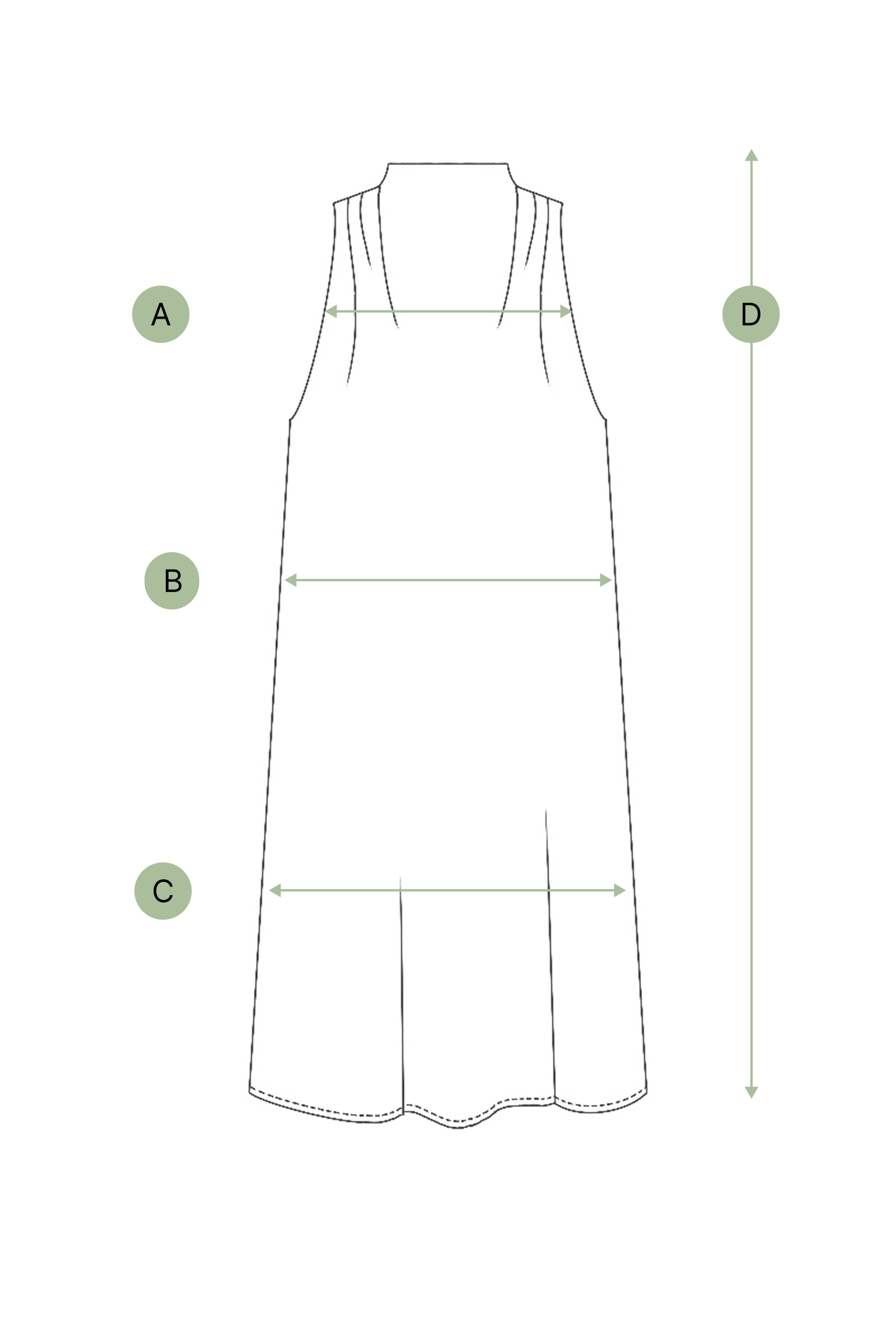 The Naja Dress fits true to size. All measurements are taken flat, from seam to seam.