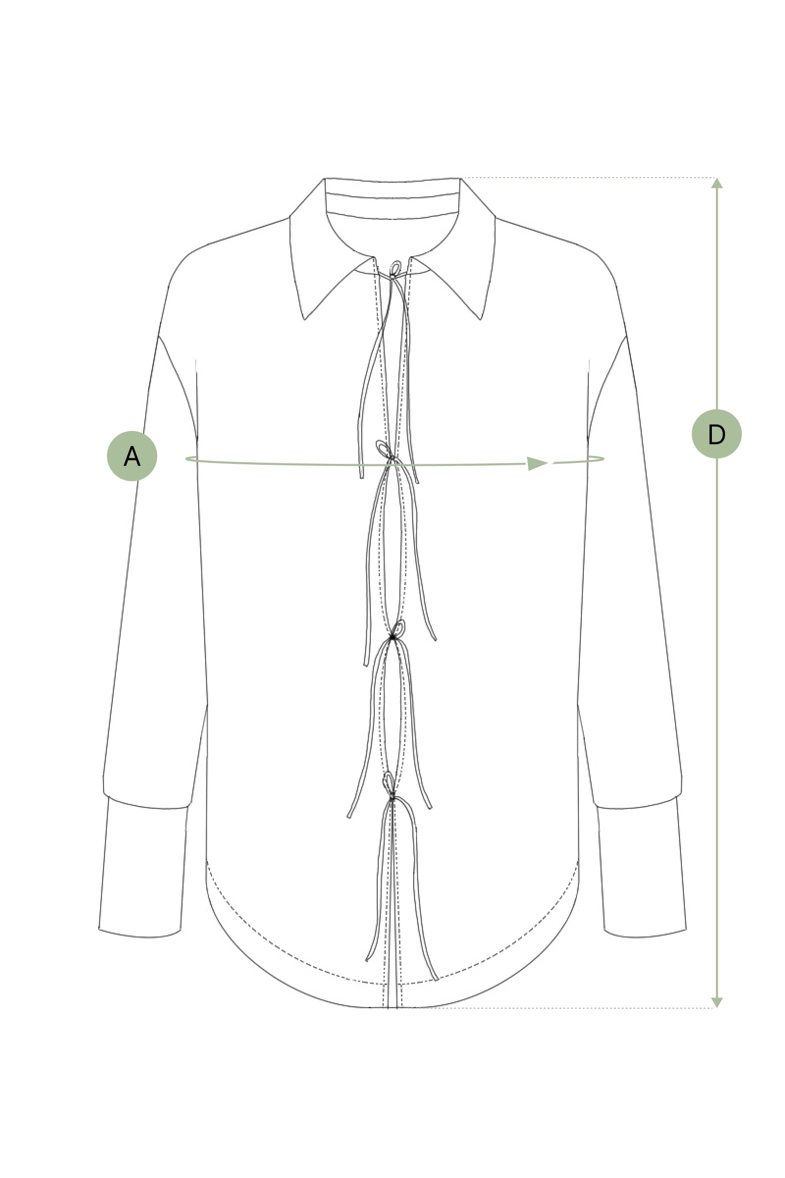 Oversized Shirt featuring classic shirt collar, spaghetti fastenings, exaggerated cuffs, and a rounded hem with split side seam detail. The Sand Shirt fits adjustably loose.